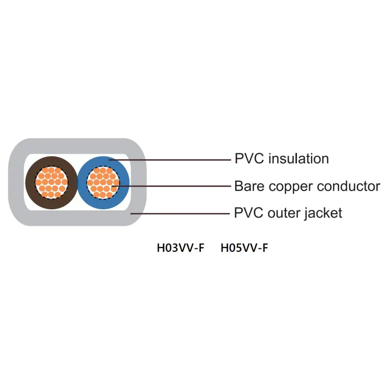 H05VV-F, H05VVH2-F, H03VV-F, H03VVH2-F складається з тонких мідних провідників класу 5, ізоляції та оболонки з ПВХ, що не містить свинцю.