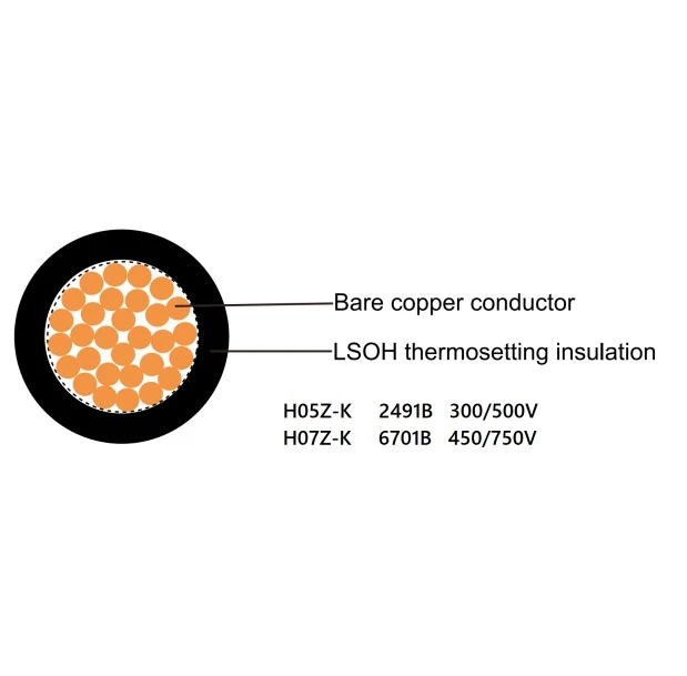 Провідник: H05Z-U H07Z-U: суцільний оголений мідний одиночний дріт відповідно до EN 60228 cl-1